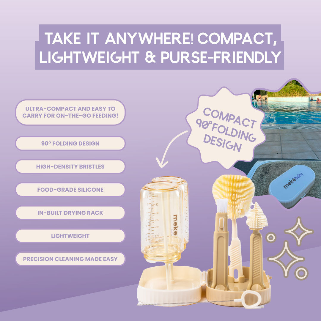 Forget searching for a nearby café or hot water supply, quickly and efficiently warm your milk within minutes! Complete with a Meke Cleaning Kit, cleaning on the go cannot be easier!