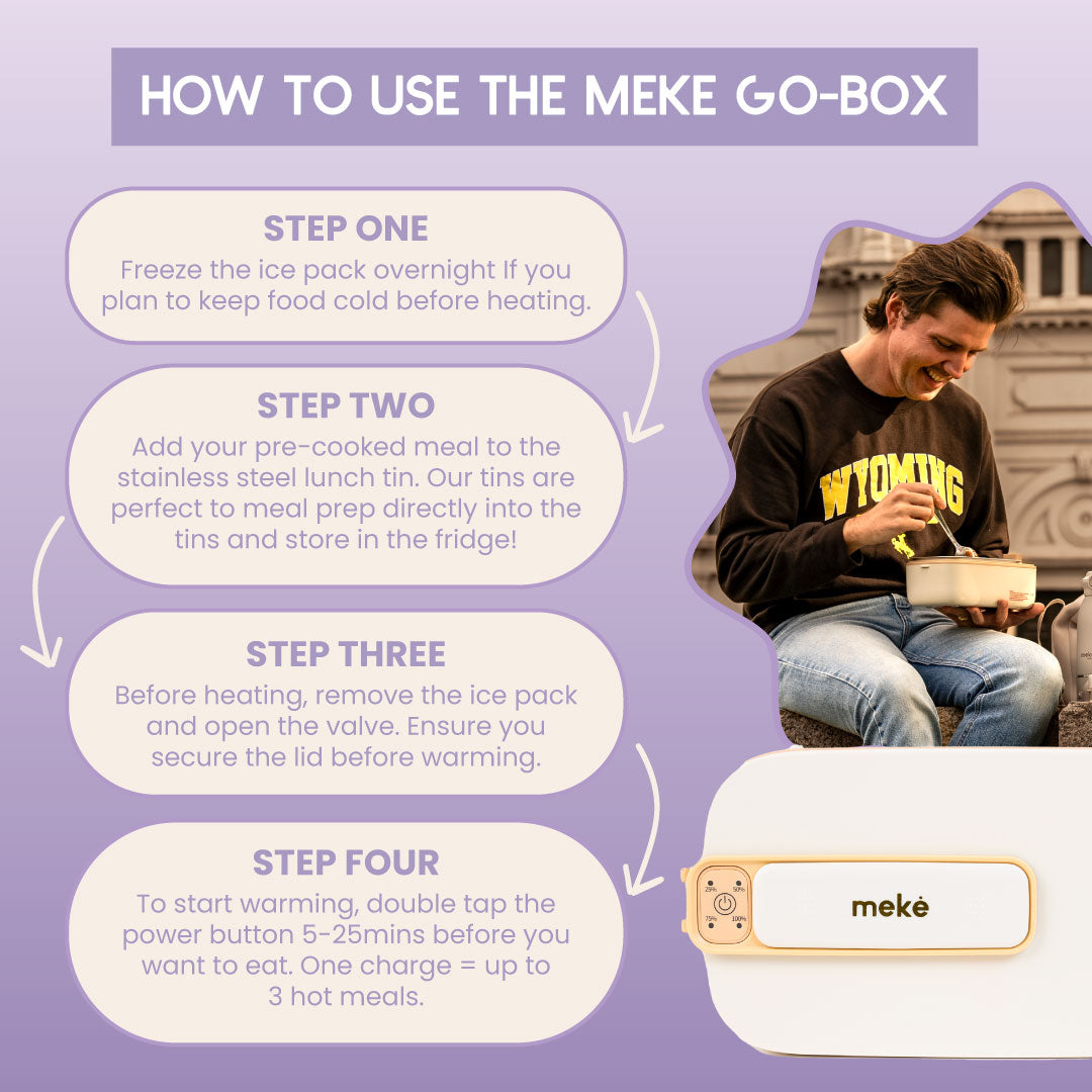 Meet the Meke Go-Box! the compact, portable warming lunch box that transforms the way you eat on the go.