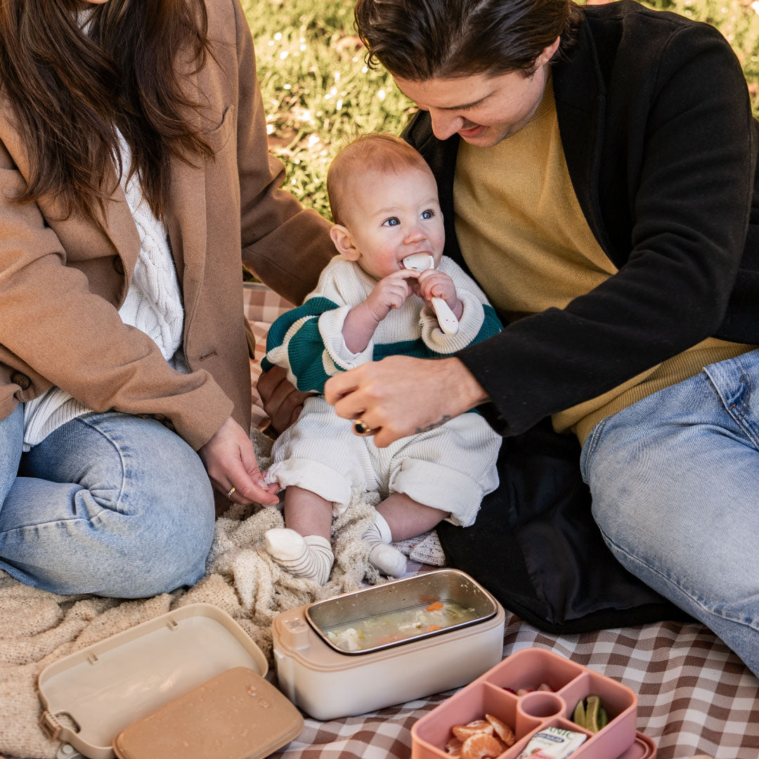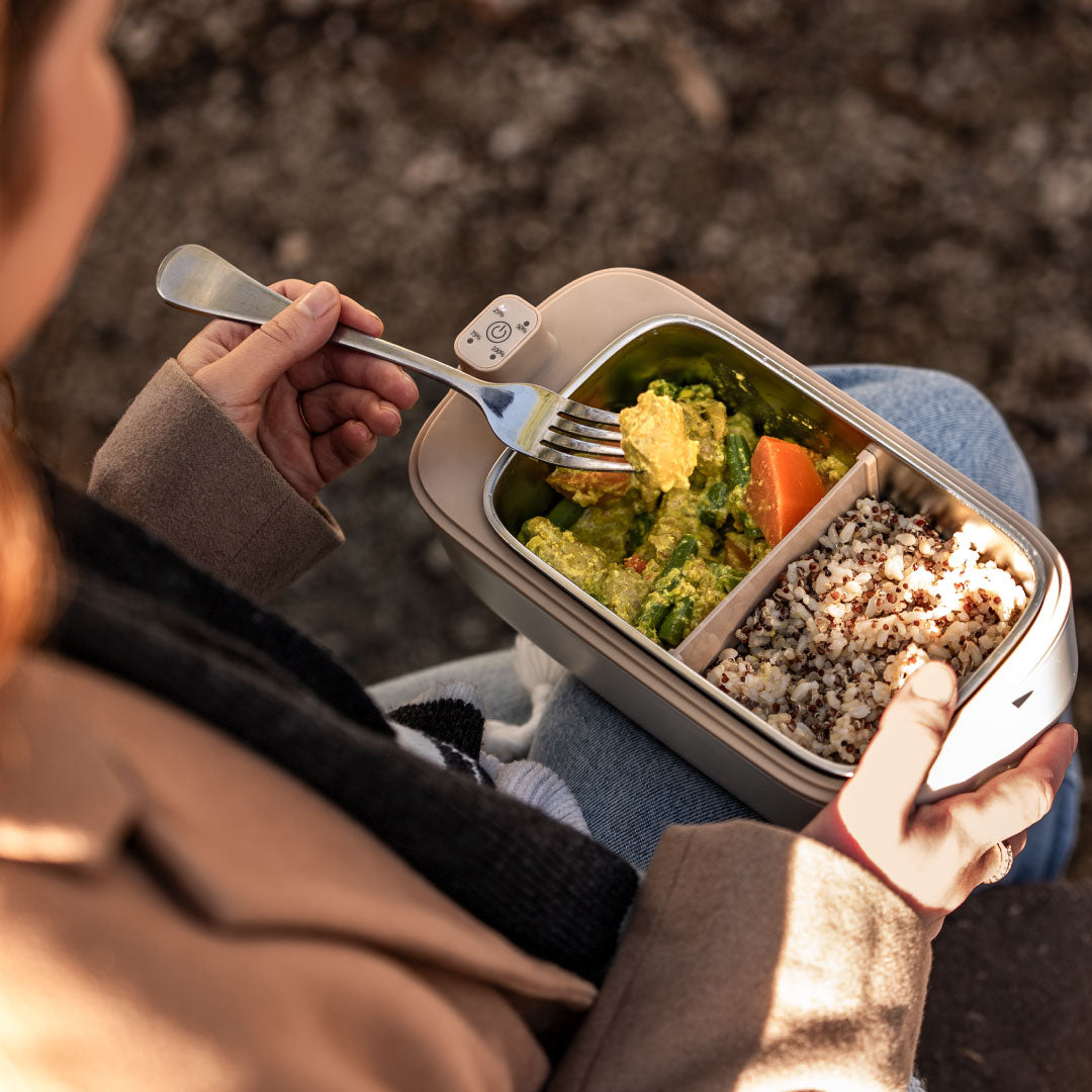 Our 100% stainless steel, dishwasher safe tins make meal prep and clean up a breeze. Swap them in seconds with our interchangeable design! Whether you're at the job site, on daycare drop offs, stuck in the office, or on your next outdoor adventure the Go-Box gently warms your food wherever you are, so you can enjoy real, nourishing meals anywhere, anytime.